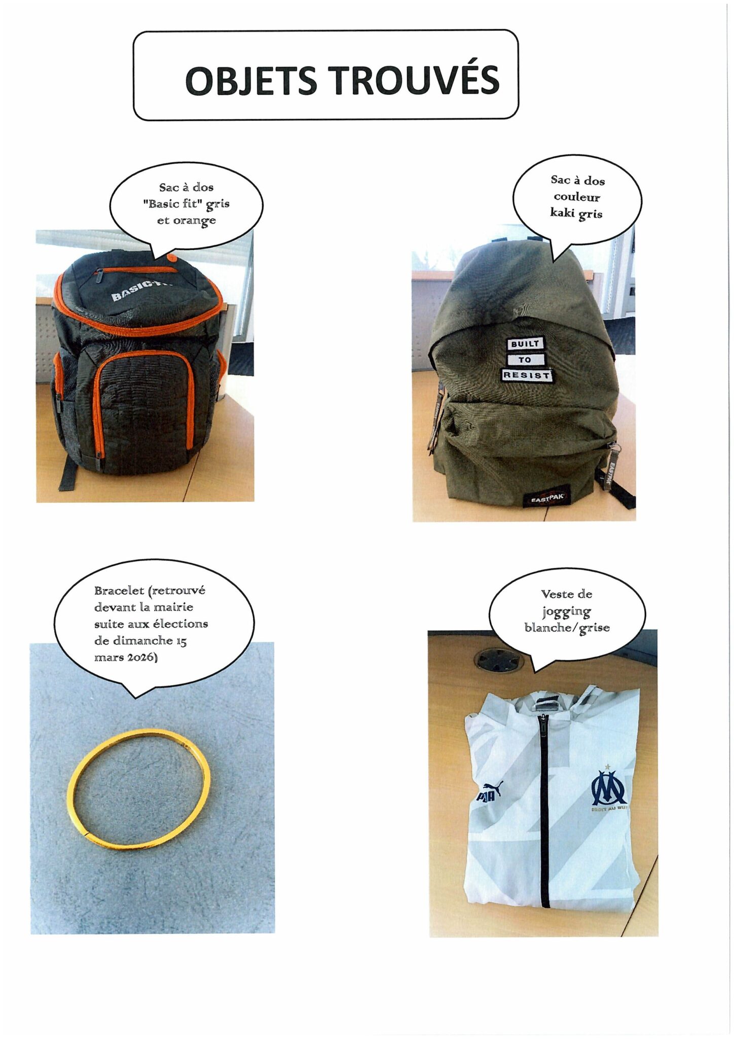 Si un de ces objets vous appartient, merci de venir le récupérer à l’accueil de la mairie.